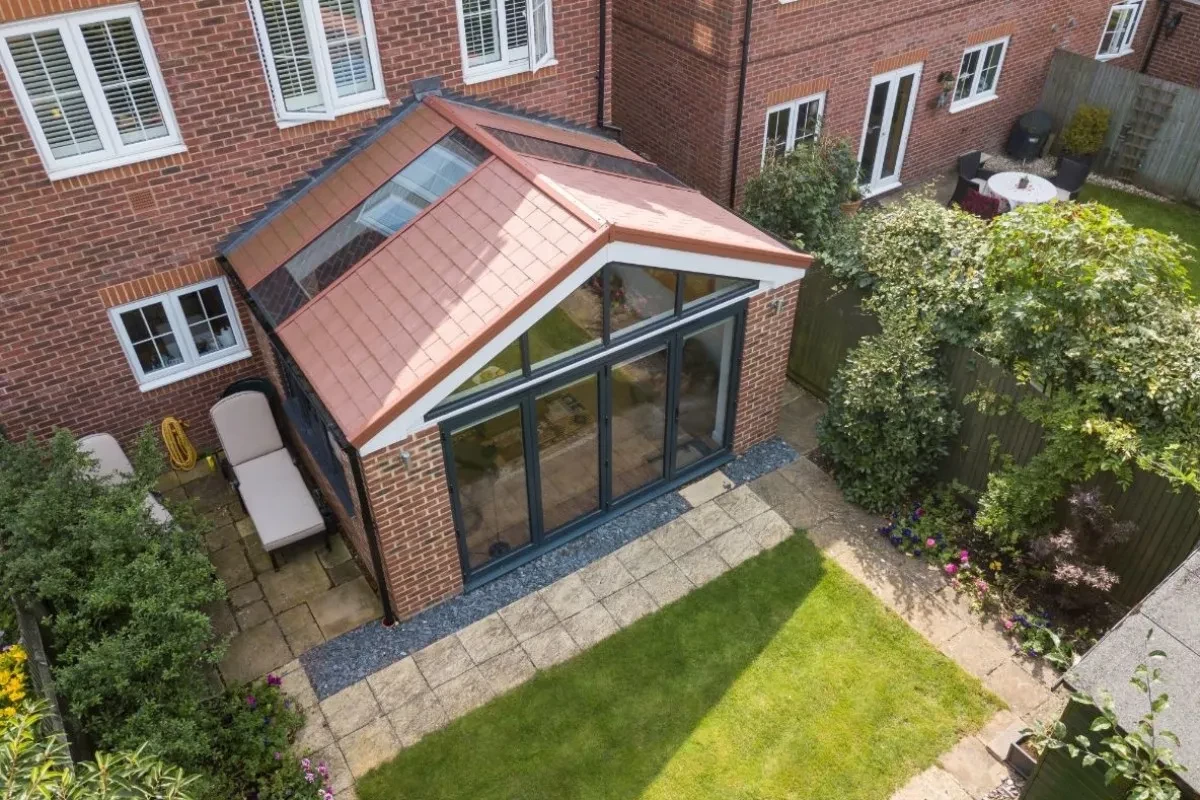 If you have a leaking conservatory roof and want to improve its energy efficiency while keeping plenty of natural light, then the hybrid Livinroof is the answer. It looks very similar to a conservatory roof from the outside, and you can specify which panels you would like to be insulated and which ones you would like to be glazed. This enables you to have natural light where you need it and ensures your updated conservatory is both warm and bright.