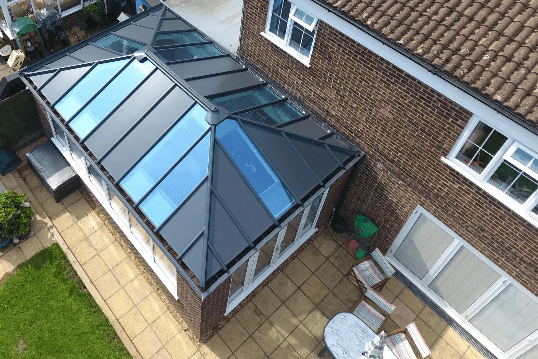 Livinroof is a solid roof system that combines the best of both solid and glass conservatory roofs, allowing you to position shaped glazing almost anywhere in the roof to create stunning designs not possible with other solid roof systems on the market. Ultraroof is a tiled conservatory roof that looks outstanding and provides incredible thermal performance.