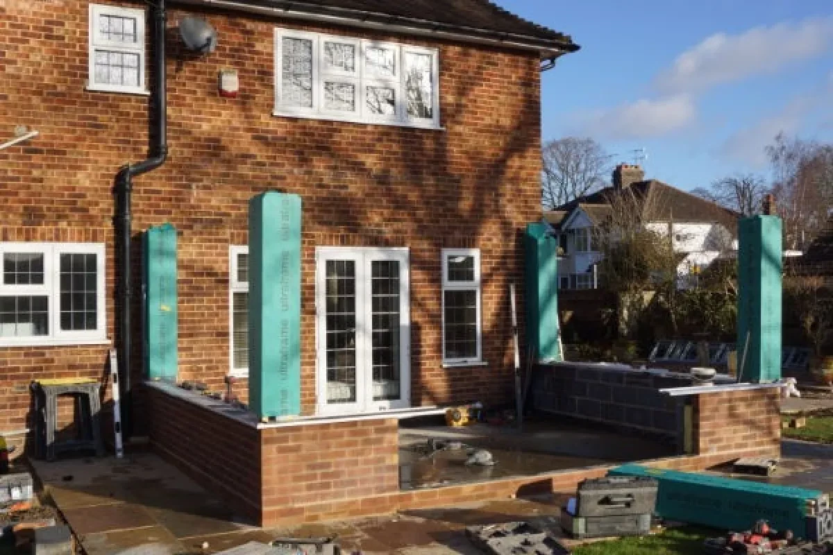 Brenda had a very clear idea on what she wanted and whilst she wanted a traditional style of orangery she was adamant that she wanted an aluminium frame as she did not want the upkeep of wood. After speaking with her window cleaner, who had recently had a glazed extension installed by Barong Windows she contacted John Wraight, whereupon John introduced her to her Ultraframe's range of house extensions. Brenda was extremely comfortable with John and liked the ethos of Barong Windows, having talked through the many different combinations that they were able to offer, she was completely blown away with it and went ahead and placed an order for a substantially sized extension. The base was completed in just a few days.
