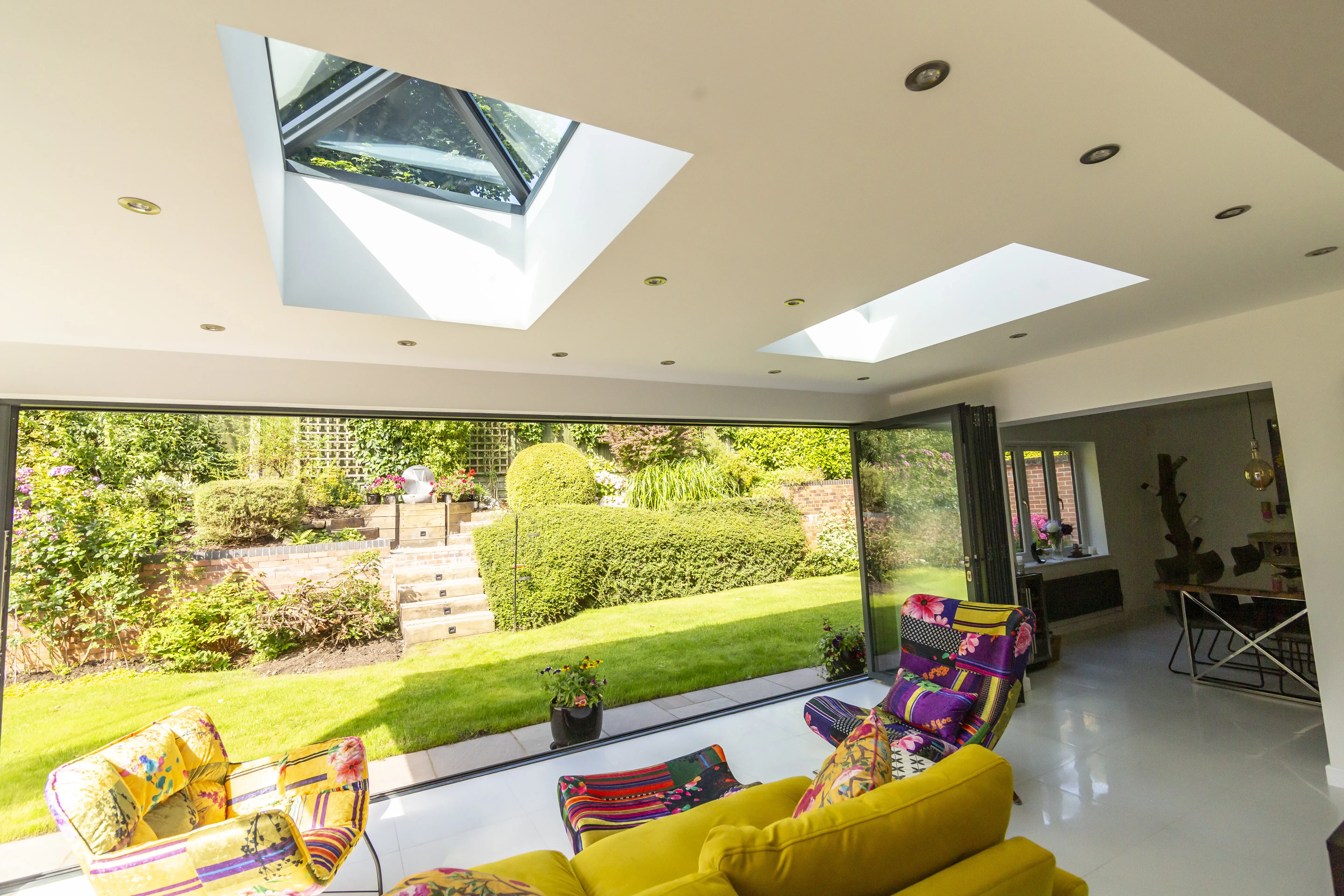 Kathy & Adrian Ellis have recently converted their old conservatory into a stunning new flat roof extension featuring Ultrasky Lanterns. Flooded with light thanks to the two large lanterns in the roof and with striking bi-fold doors that fully open the extension up to the garden, it is undeniable that this is an extension with the wow factor!