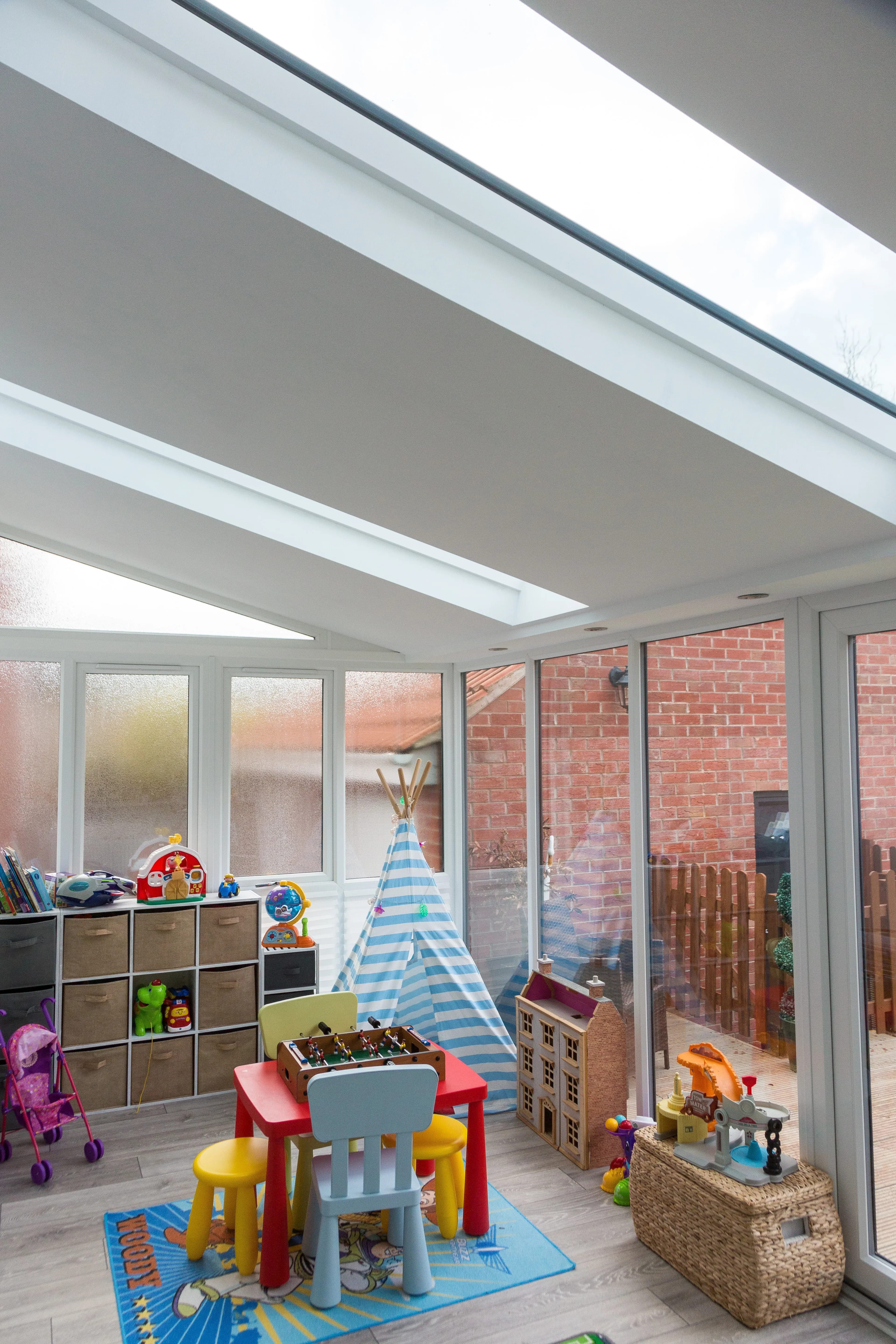 Space for them to play with all of their toys, while keeping the rest of the downstairs less cluttered was the aim of their home improvement project and the couple started to explore the options for extending their home. After searching online, they came across Lifestyle Windows – their local Ultraframe installer – and they explained the wide range of conservatory and extension options that are available using Ultraframe roofing systems.