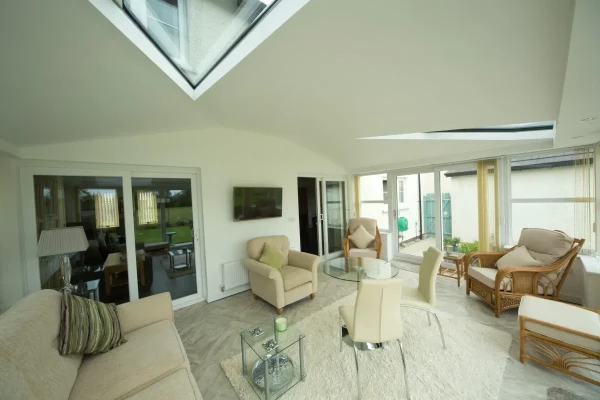 To further improve the thermal efficiency of your new room, you can ask your installer to fit Conservaglass into the side frames. This will further decrease UV penetration that might cause your new room to overheat during summer and will protect the fabric in your furnishings from losing their vitality due to continued exposure to sunlight.
