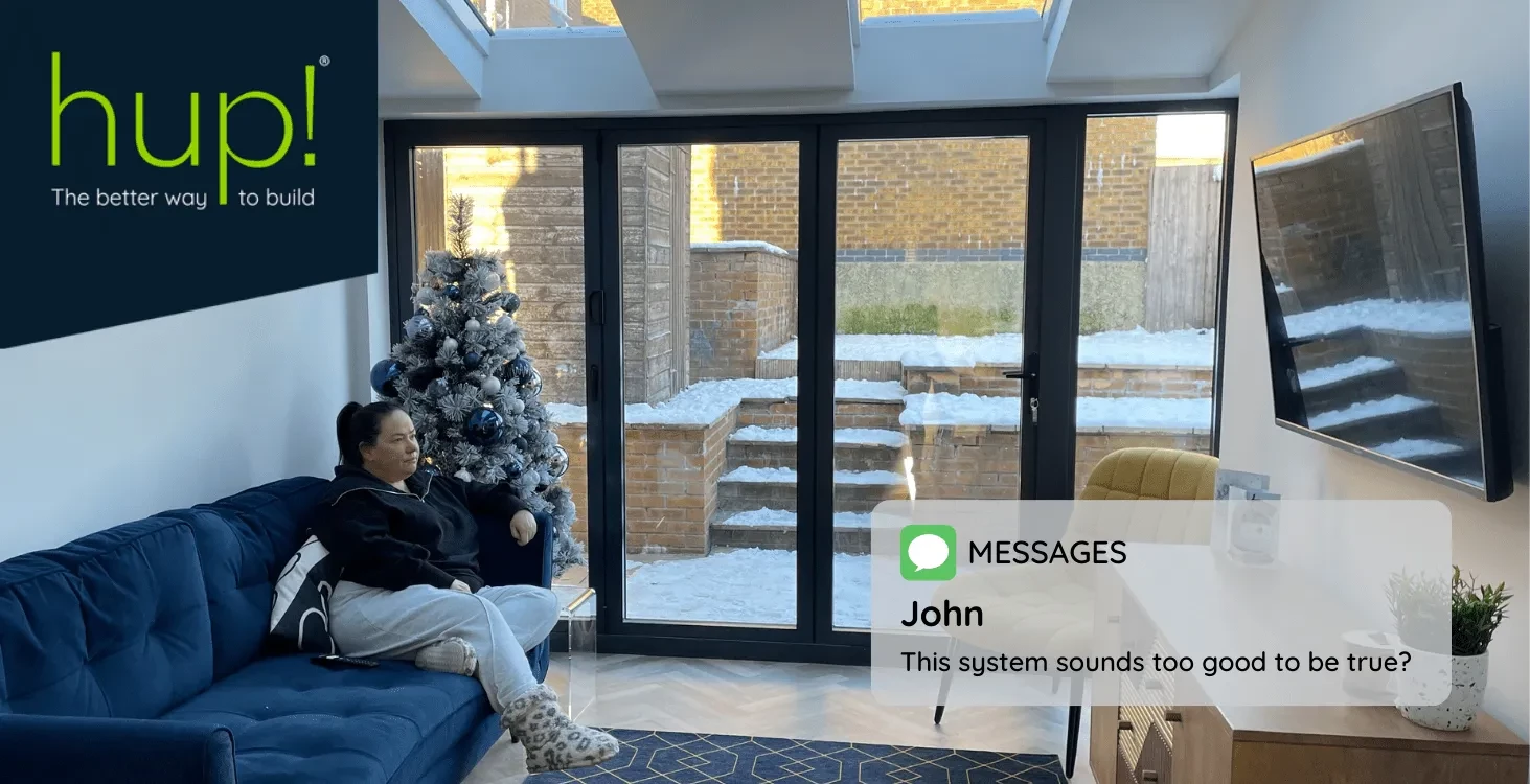 The hup! building system from Ultraframe offers so many benefits that some homeowners have questioned if what they read about it can really be true – and have subsequently been reassured that hup! IS every bit as good as it sounds by homeowners who have already had their hup! built!