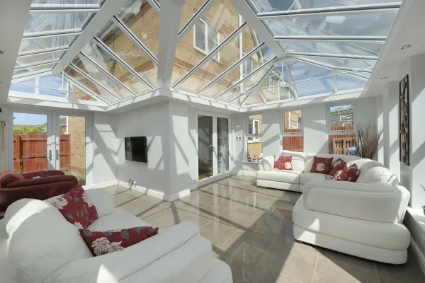 The variable width internal pelmet included with your conservatory allows speakers or spotlights to be fitted. Additional lighting can be fixed into a central lighting panel that will also act as focal point and decorative feature.